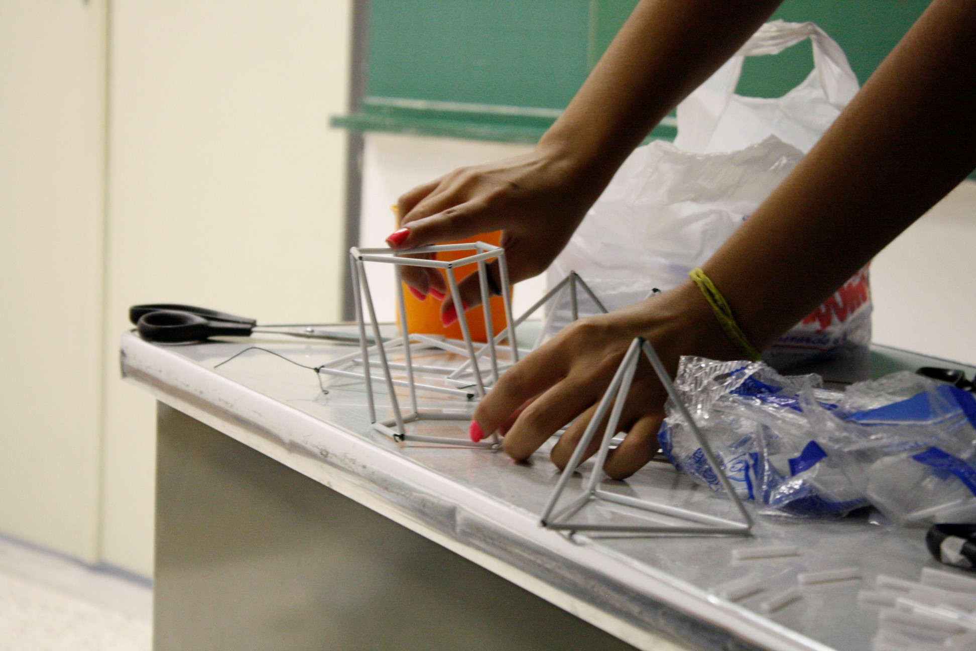 No terceiro encontro do Clube, a galera participou de uma oficina de figuras 3D usando canudos de plástico e pôde entender na prática vários conceitos sobre geometria.